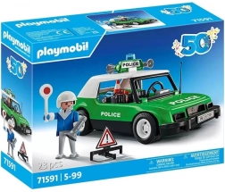 Das Set umfasst eine Polizeifigur aus den 70er Jahren, ein Helm, Kegel und weitere Retro-Accessoires, die es Kindern und Erwachsenen ermöglichen, klassische Polizeiszenerien nachzuerleben. Das Fahrzeug ist so konzipiert, dass es bis zu vier Figuren aufnehmen kann, wobei das abnehmbare Dach das Platzieren im Inneren erleichtert. Darüber hinaus ist das Set mit funktionalen Lichtern und einer Sirene ausgestattet, was das realistische Spielerlebnis erhöht.