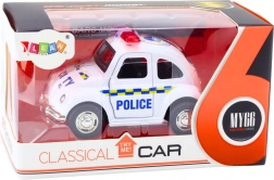 Dieses klassische Polizeiauto ist mit einem Reibungsantrieb ausgestattet, der nach Geschwindigkeitsaufnahme eine Vorwärtsbewegung ermöglicht, wodurch realistische Szenen von Polizeiverfolgungen oder -patrouillen entstehen. Öffnende Türen verleihen Spielszenen zusätzlichen Realismus.