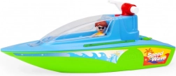 Das LENA Sportboot „Speed Wave“ verwandelt jedes Baden in ein Action-Spiel. Die öffnende Kabine bietet zwei Plätze für Figuren, sodass die Crew jederzeit und überall zur Mission aufbrechen kann. Mit der funktionierenden Wasserkanone samt mechanischer Pumpe lassen Kinder mühelos einen Wasserstrahl abfeuern – perfekt für Wasserschlachten und Zielübungen.