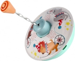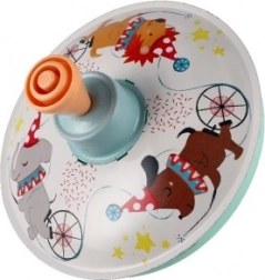 Der Kreisel besticht durch leuchtende Farben und niedliche Tierillustrationen, was für visuelle Anziehungskraft bei Kindern sorgt.