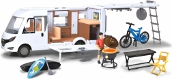 Zum Lieferumfang gehören auch bewegliche Teile und thematische Accessoires – Interpack, Surfbrett, Fahrrad und Grill – die die Spielmöglichkeiten erweitern und die Kreativität fördern. Das Fahrzeug ist ohne Antrieb, was ein sicheres und leises Spielen drinnen wie draußen gewährleistet.
