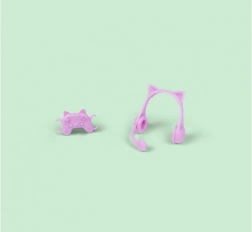Enthalten sind auffällige Kopfhörer mit Ohren sowie ein kleiner Spielecontroller – perfekte Requisiten für Spielgeschichten und digitale Abenteuer.