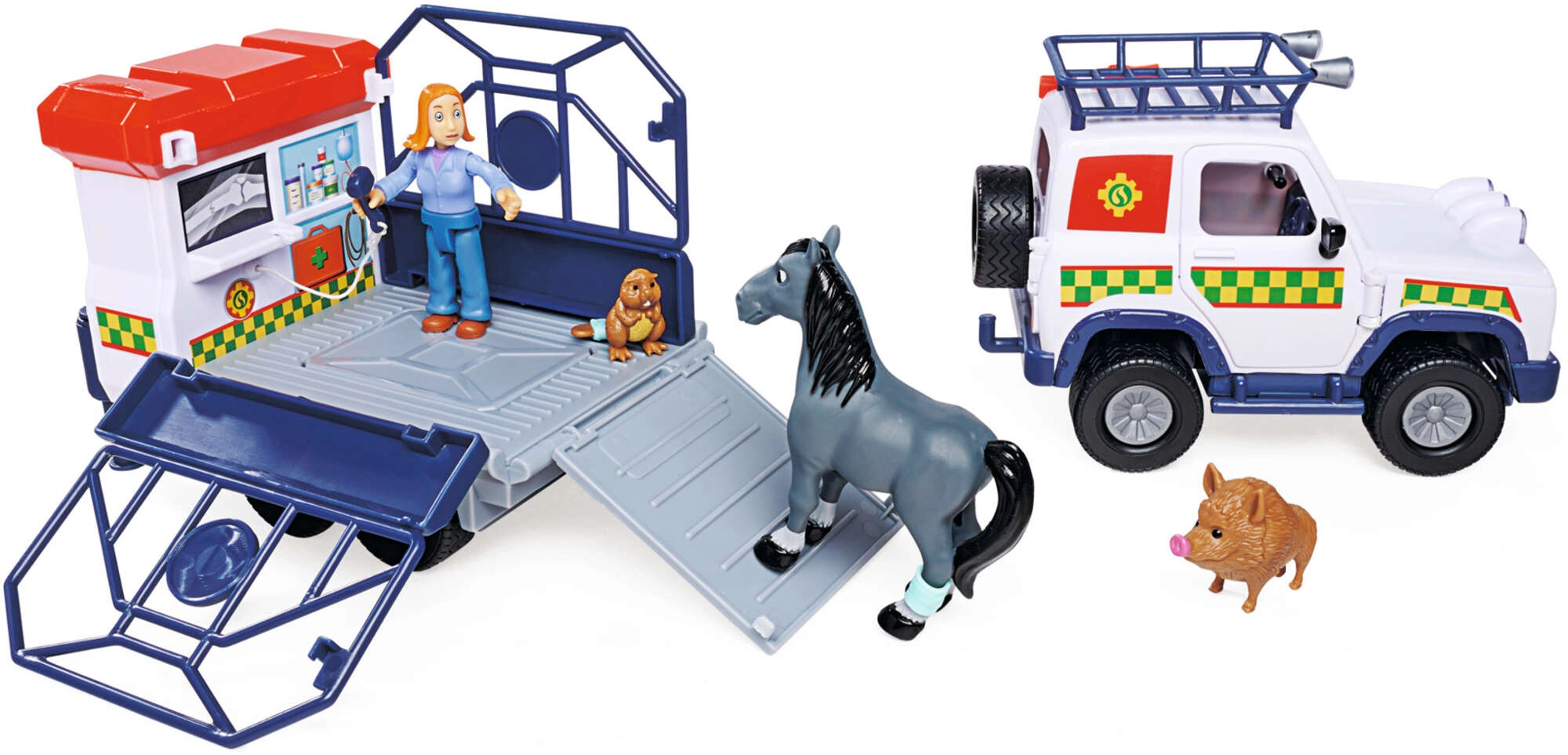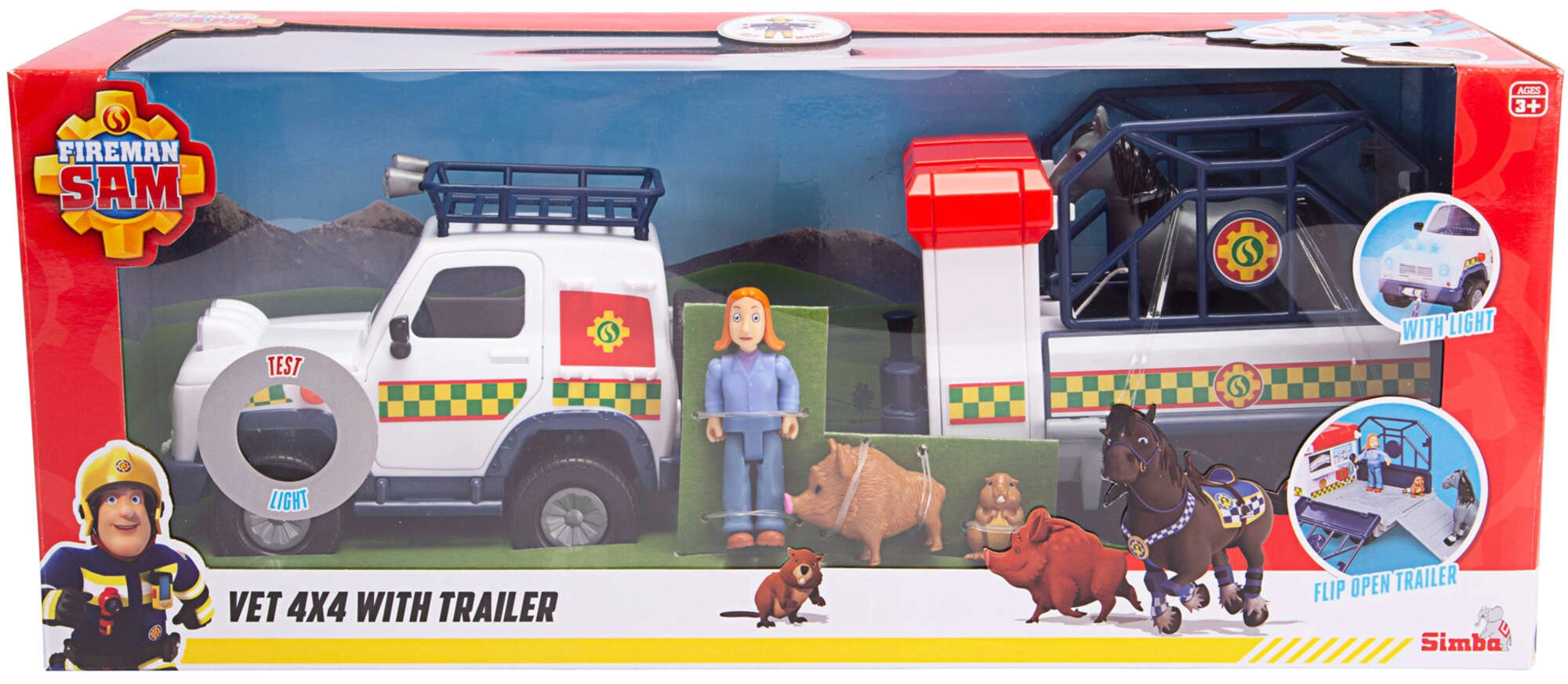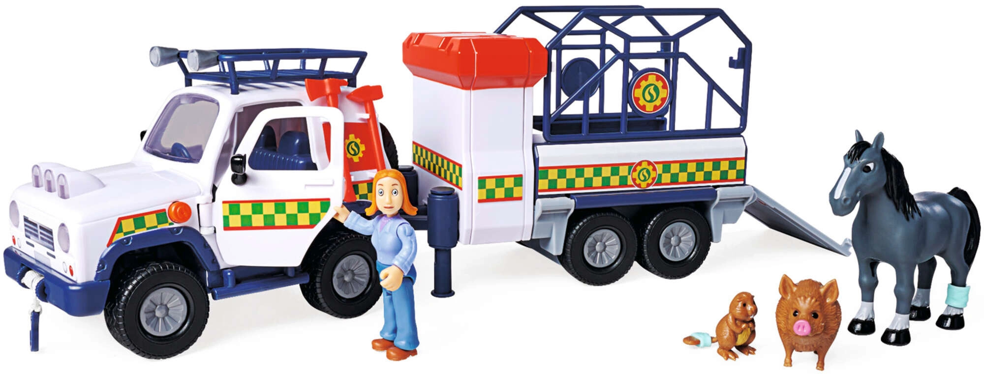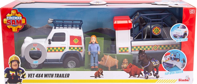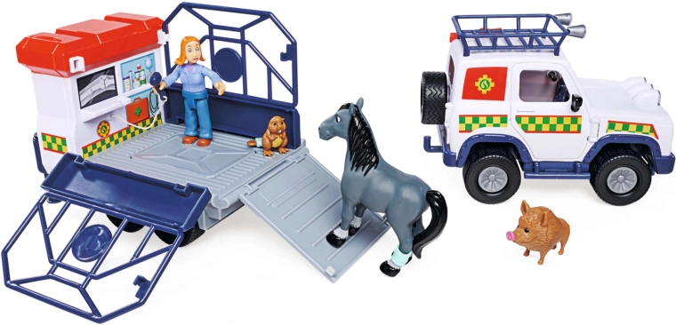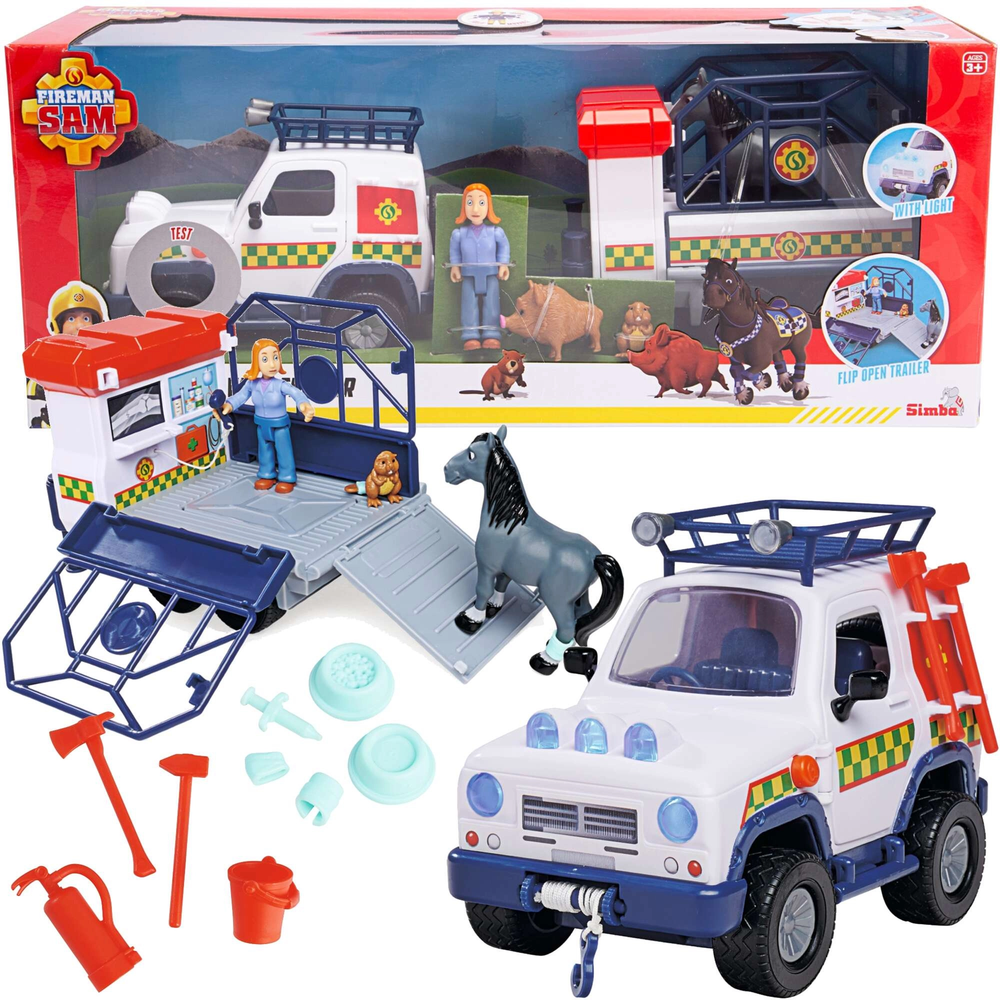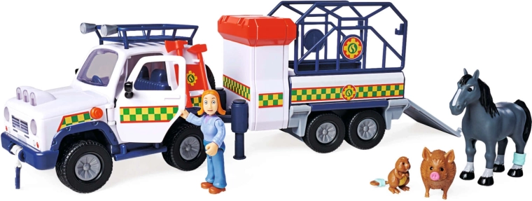 Erleben Sie spannende Rettungsmissionen mit dem Feuerwehrmann Sam Rettungswagen mit Anhänger. Dieses Spielset ist perfekt für kleine Abenteurer, die Tiere lieben und gerne auf Rettungsmissionen gehen wollen.