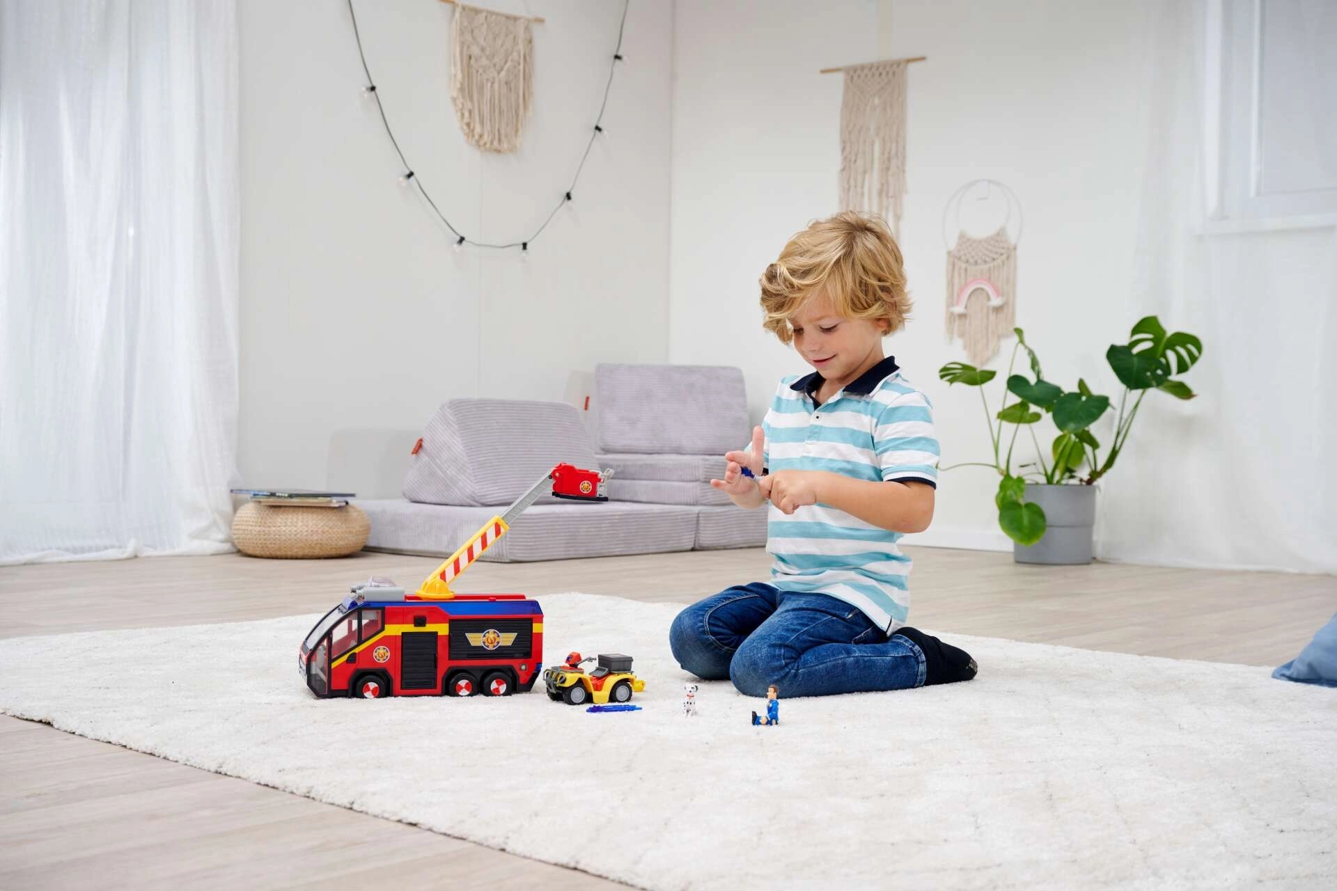 Feuerwehrmann Sam lebt zusammen mit Neffen und Freunden im charmanten Pontypandy, wo alltägliche Ruhe oft von aufregenden Abenteuern durchbrochen wird. Kinder lieben es, in die Rolle von Sam zu schlüpfen und seine Heldentaten nachzuspielen. Entdecken Sie die Vielzahl an offiziellen Spielzeugen von Simba auf Lizenzbasis der Feuerwehrmann Sam-Serie und ermöglichen Sie stundenlangen Spielspaß in heldenhaften Rettungsaktionen.