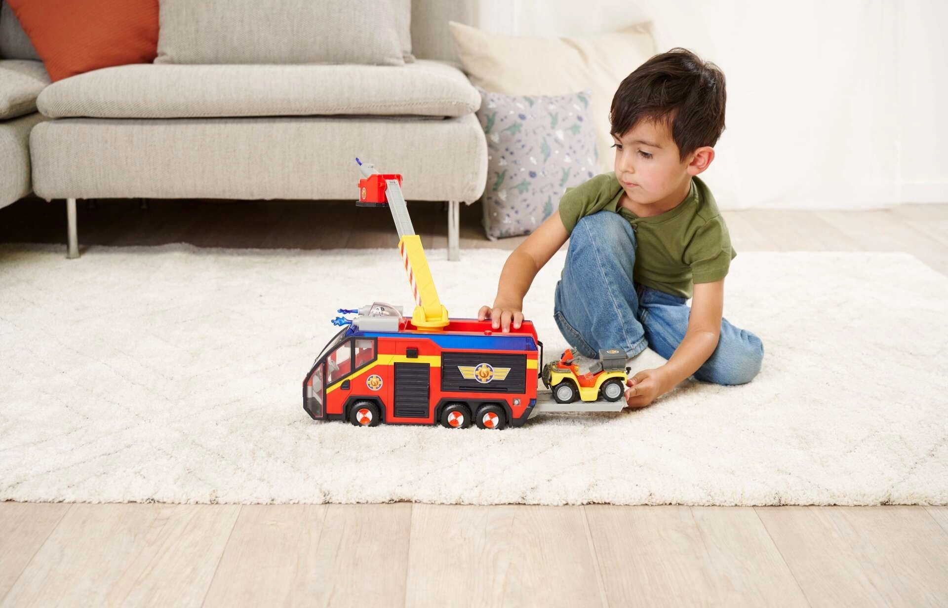 Der lizenzierte Feuerwehrwagen ist kompatibel und erweiterbar mit anderen Figuren, Stationen und Fahrzeugen aus der Serie. Parken Sie z.B. das Feuerwehr-Quad auf der ausziehbaren Plattform von Jupiter!