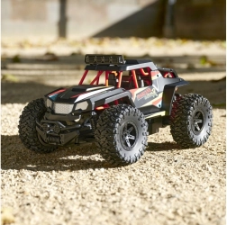 Sein imposantes Erscheinungsbild verdankt er vor allem den riesigen, massiven Gummireifen, mit denen er für jedes Abenteuer bereit ist. Offroad-Rennen mit Geschwindigkeiten bis zu 15 km/h stehen hier auf der Tagesordnung. Dank der hellen Scheinwerfer auf dem Dach zieht das ferngesteuerte Auto auch in der Dämmerung alle Blicke auf sich.