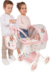 Der Wagen ist klappbar, sodass er leicht verstaut oder auf Reisen mitgenommen werden kann. Das praktische untere Ablagefach, die weiche Matratze und die Abdeckung der Babywanne mit Schlaufen sorgen für Komfort der Puppe und Ordnung beim Spielen. Ebenfalls enthalten ist ein stylischer Rucksack, der am Griff befestigt oder auf dem Rücken getragen werden kann.