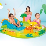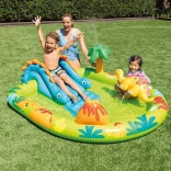 Dieser aufblasbare Pool mit originellem Dinosaurier-Design bringt jede Menge Spaß in den Garten. Kinder haben Freude am Rutschen und Spielen mit den Dinosaurier-Figuren, während die eingebaute palmenförmige Sprinklerdüse für zusätzliche Wassererfrischung sorgt.