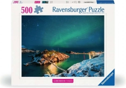 Entdecken Sie die Magie des Ravensburger Puzzles, das Sie in die faszinierende Welt der skandinavischen Landschaften mit Polarlicht entführt. Dieses 500-teilige Puzzle bietet stundenlangen Spaß, wobei jedes Teil präzise an seinen Platz passt und ein wunderschönes Bild entsteht.