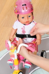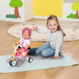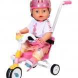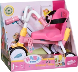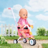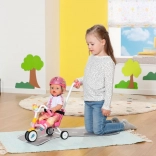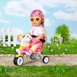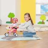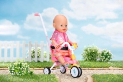 Dieses rosa Dreirad ist für realitätsnahes Spiel mit BABY BORN Puppen konzipiert. Das Kind kann die Puppe mit der 45 cm langen Schiebestange schieben oder sie dank der Pedalschlaufen „treten“ lassen. Die robuste Konstruktion und das stabile Dreiradfahrgestell unterstützen eine sichere Fahrt drinnen und draußen.