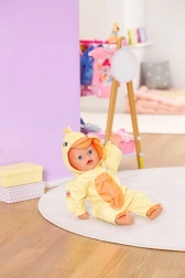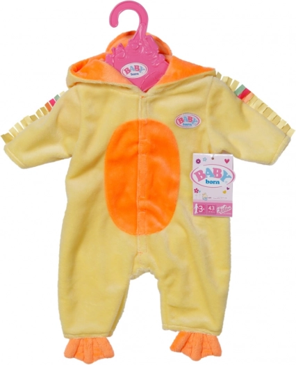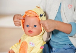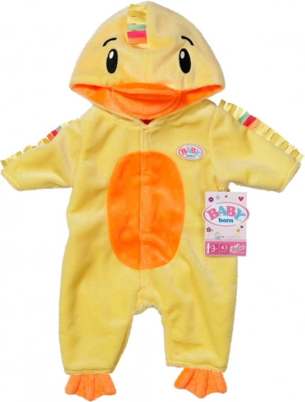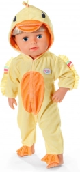 Der weiche Enten-Overall für BABY born Puppen in Größe 43 cm macht aus dem Spiel ein kuscheliges Abenteuer. Die Kapuze mit Schnabel, der kontrastierende orange Bauch und die „Schwimm“-Füßchen sorgen für einen niedlichen Look, während der Frontreißverschluss das Umziehen und das Üben der Feinmotorik erleichtert.