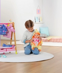 Der Overall besteht aus weichem Textil, ideal zum Spielen und nach dem „Bad“ der Puppe. Kinder lieben das angenehme Gefühl und den Komfort beim Kuscheln.