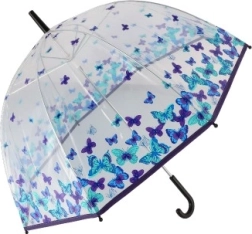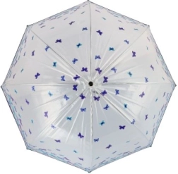 Wählen Sie diesen transparenten Regenschirm mit bunten Schmetterlingen, der eine Kombination aus Eleganz und Funktionalität bietet. Dieses Accessoire erhellt Ihre Regentage und lässt sich leicht mit Ihrer Garderobe kombinieren.