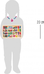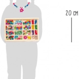 Entdecke eine bunte Welt der Fantasie mit den Holzperlen im Box-Set Vivien. Kinder gestalten mühelos einzigartige Ketten, Armbänder und Anhänger, während sie Feinmotorik und Konzentration trainieren. Der praktische transparente Deckel hält alle Teile sicher an Ort und Stelle und ermöglicht einen schnellen Überblick über den Inhalt.