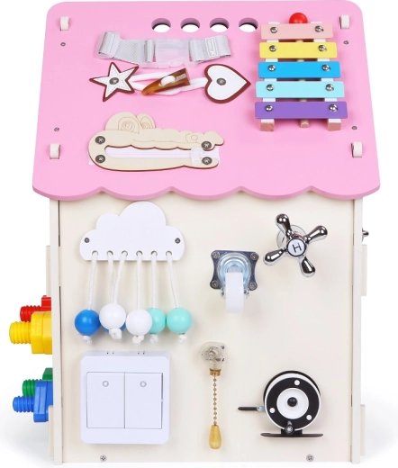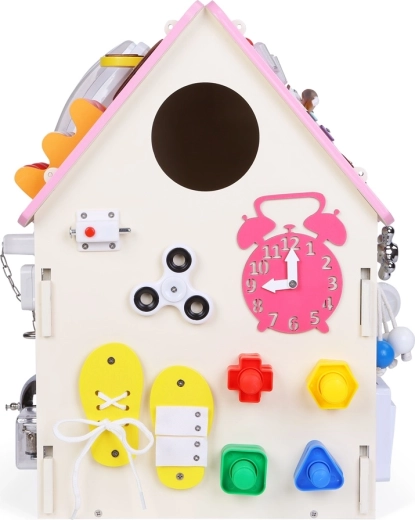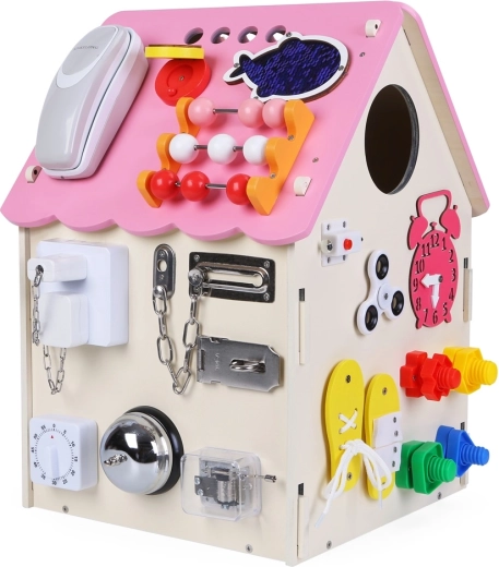 Entdecken Sie das reich ausgestattete Activity-Board-Häuschen, das Spiel und Lernen vereint. Mit vielfältigen mechanischen Elementen – Schlössern, Schnallen, Schnürsenkeln, Rädern und Schaltern – verfeinern Kinder ihre Feinmotorik und ihr logisches Denken, während sie Kreativität und Neugierde entwickeln.