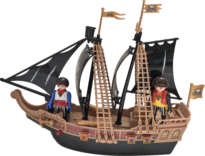 Dieses Piratenschiff bringt Kindern actiongeladene Abenteuer auf den Wellen der Fantasie. Realistische Licht- und Schusseffekte mit Sound werden über einen Knopf an der linken Schiffsseite ausgelöst und verleihen dem Spiel Spannung und Atmosphäre. Die zwei beiliegenden Figuren (7 cm) ermöglichen sofortige Geschichten über Schätze und Seeschlachten.