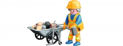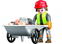 Enthält eine Bauarbeiterfigur, eine Schubkarre, Ladung und Werkzeug