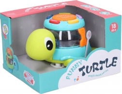 Entdecken Sie die spielerische Trommel in Schildkrötenform, die Kinder mit fröhlichem Design und interaktiven Effekten begeistert. Dank der Licht- und Tonfunktionen motiviert sie zum Spielen, unterstützt das rhythmische Empfinden und fördert die Feinmotorik. Die praktische ON/OFF-Taste ermöglicht eine einfache Bedienung und die Schildkröte ist mit Freilaufrollen für eine geschmeidige Bewegung auf dem Boden ausgestattet.
