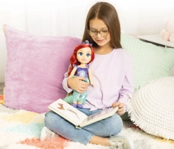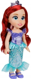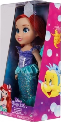 Prinzessin Ariel aus dem beliebten Märchen Arielle, die Meerjungfrau kommt als 40 cm große Puppe und verzaubert jede kleine Märchenliebhaberin. Glitzernde Elemente am Kleid und das Krönchen unterstreichen ihren königlichen Look, während die langen, kräftig roten Haare zum Kämmen und Stylen einladen.