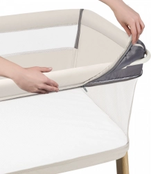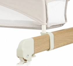 Die 7-stufige Längenverstellung der Beine ermöglicht die Anpassung an die Höhe des Elternbetts. Stabilisierende Gurte erhöhen die Sicherheit.