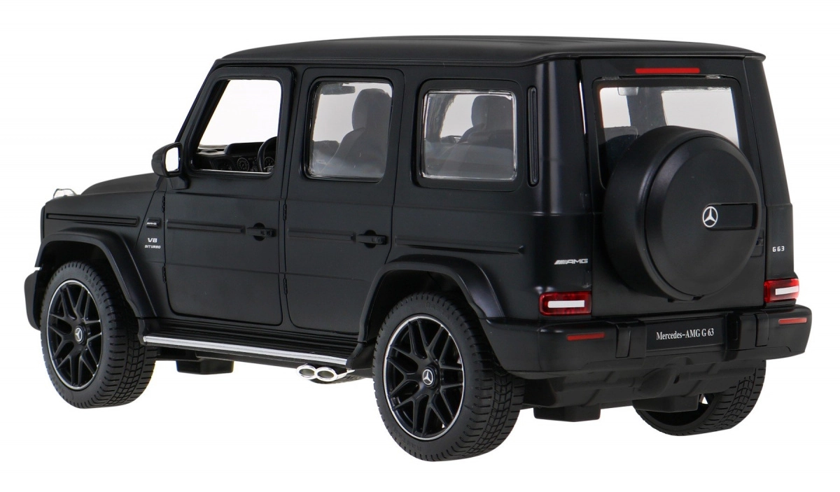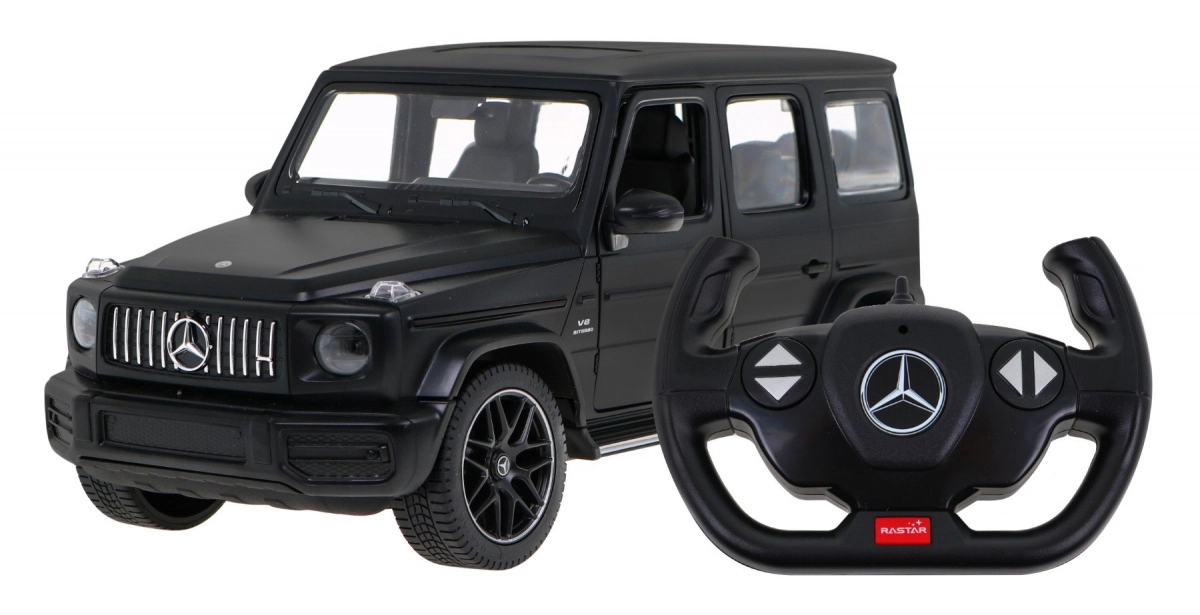 Stilvolles Modell des Mercedes‑AMG G 63 im Maßstab 1:14 von RASTAR mit detailgetreuer Ausführung, Fahrt in alle Richtungen, LED‑Lichtern und unabhängiger Federung. Öffnende Türen, Gummireifen und Steuerung mit 2,4 GHz sorgen für eine unterbrechungsfreie, flüssige Fahrt.