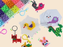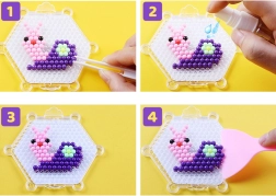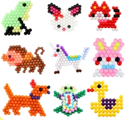 Legen Sie die Perlen einfach nach Vorlage und besprühen Sie sie mit Wasser. Es entstehen schöne und dauerhafte Muster, auch für Kinder geeignet.