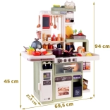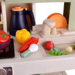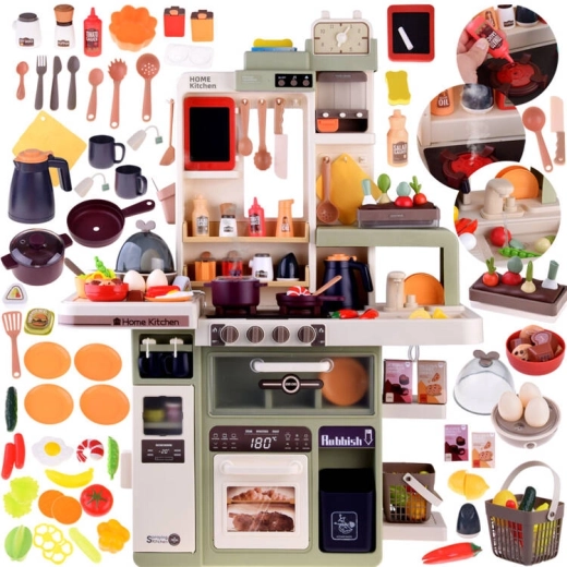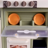 Diese geräumige Kinderküche aus Kunststoff in modernen Farben begeistert jedes Kind, das Rollenspiele rund ums Kochen liebt. Realistische Elemente wie leuchtende Kochfelder, Kochgeräusche und sicherer Dampf aus den Brennern sorgen für ein authentisches Erlebnis. Dank des funktionierenden Wasserhahns mit geschlossenem Wasserkreislauf können Kinder Abwaschen und sogar das Gießen von „Kräutern“ üben.