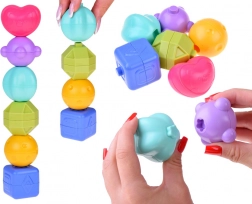 Bunte, elastische Bänder bieten beim Durchschieben der Klötzchen einen leichten Widerstand. Kinder stärken ihre Finger, entwickeln den Tastsinn und verbessern Geschicklichkeit und Konzentration.