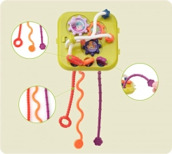 Das Spiel mit dem Würfel entwickelt auf natürliche Weise die Feinmotorik, lehrt Kinder, Farben und Formen zu erkennen, und unterstützt logisches Denken. Dank der rasselnden Klötzchen und vielfältigen Texturen bietet er reichhaltige sensorische Stimulation und viele Minuten konzentrierten Spiels.