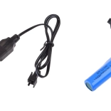 Enthalten sind ein 3,7 V 500 mAh Akku und ein USB-Kabel. Vor der ersten Verwendung empfehlen wir, mindestens 2 Stunden zu laden, um eine optimale Laufzeit zu erreichen.