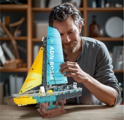 Dieser durchdachte Technik-Bausatz bietet ein authentisches Bau- und Ausstellungserlebnis. Der detaillierte Rumpf, farbige Segel mit Leinen und funktionierende Winschen erzeugen das realistische Erscheinungsbild einer Rennjacht, die Sie tatsächlich steuern können – vom Ruder und der Lenkung bis hin zur Einstellung der Segel.