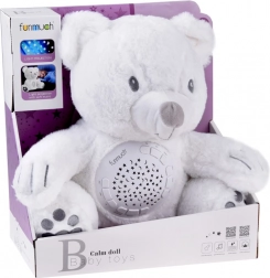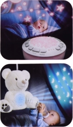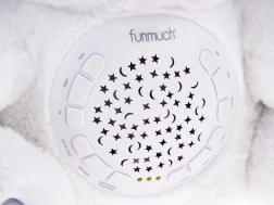 Dieser weiche, weiße Bär vereint Spielzeug und Nachtlicht in einem. Dank 6 sanfter Schlaflieder und 5 authentischer Naturgeräusche hilft er, Ihr Kind zu beruhigen und Geborgenheit zu vermitteln. Der farbige Sternen- und Mondprojektor schafft an Wänden und Decke eine beruhigende Atmosphäre, die die Dämmerung vertreibt und einen ruhigen Schlaf fördert.