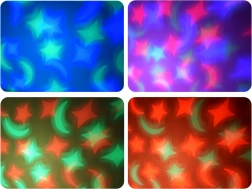 Der integrierte Projektor zaubert farbige Sterne und Monde in Rot, Rosa, Grün, Orange und Blau an die Wände – perfekt für Abendrituale.