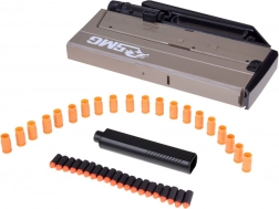 Das abnehmbare Magazin und die beiliegenden Patronenhülsen mit Pfeilen ermöglichen schnelles Nachladen und unterbrechungsfreien Spielspaß.