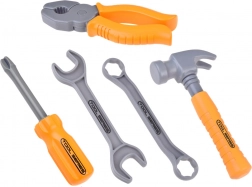 Das Set enthält Hammer, Schlüssel, Schraubendreher, Schrauben, Muttern und Bauteile – ideal zum Üben der Feinmotorik und für kreatives Bauen.
