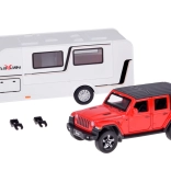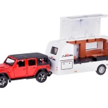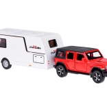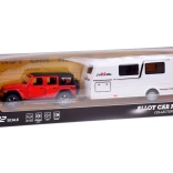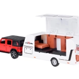 Das Set aus Geländewagen und Wohnwagen bietet Kindern realistisches Spiel rund um Reisen und Camping. Die Metall-Kunststoff-Konstruktion sorgt für Haltbarkeit und lange Lebensdauer, während Licht und Sound das Fahrerlebnis verstärken. Dank des Pull-back-Antriebs reicht es, das Auto nach hinten zu ziehen und loszulassen – es fährt von selbst nach vorne.