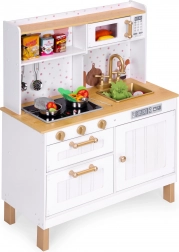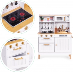 Die Holzküche für Kinder von ECOTOYS ist die ideale Wahl für kleine Chefköche. Sie bringt Freude und Spaß beim Nachahmen echter Küchenaktivitäten und entwickelt manuelle Geschicklichkeit und Vorstellungskraft. Die Küche ist aus hochwertigen Materialien gefertigt und enthält 7 Metallküchenaccessoires.