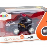 Dieses elegante schwarze Polizeiauto im Maßstab 1:38 wird jeden Liebhaber von automobilen Klassikern begeistern. Es ist mit einem Schwungradantrieb ausgestattet, der eine schnelle Vorwärtsbewegung beim Zurückziehen ermöglicht.