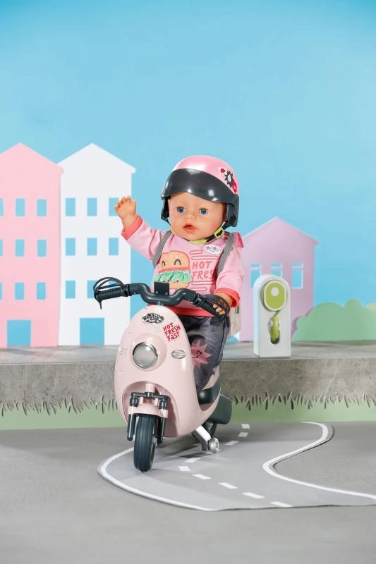 Dieser pinkfarbene elektrische Scooter ist das perfekte Zubehör für kreatives Spiel mit der BABY born Puppe. Kinder können mit der Fernbedienung die Fahrtrichtung leicht steuern, während realistische Elemente wie Lichter, Ständer und funktionale Details die Vorstellungskraft und die Motorik fördern.