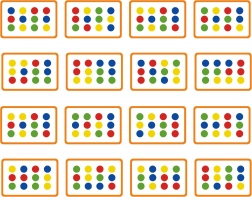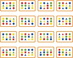 Kinder ordnen die Klötze so an, dass sie der Vorlage auf der Karte entsprechen. Sie beginnen mit einfachen Farbmustern und gehen nahtlos zu geometrischen Formen über.