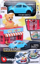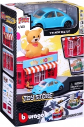 Erweitere deine Stadtkollektion mit dem Set Bburago City Spielwarengeschäft 1:43, das realistische Details und großartige Spielmöglichkeiten bietet. Enthalten sind ein Bburago-Automodell aus Metall mit präzise ausgearbeiteter Karosserie und vielen Details, ein Kunststoffgebäude des Spielwarengeschäfts mit beweglichen Türen sowie Zubehör zur Gestaltung der Straße.