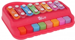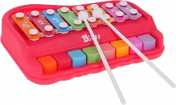 Dieses unterhaltsame Spielzeug vereint Pianino und Xylophon in einem kompakten Set, das Kinder zum ersten Musizieren motiviert. Die robuste Ausführung aus Kunststoff und Metall sorgt für Langlebigkeit und sicheres Spielen.