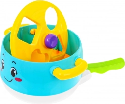 Im Lieferumfang ist ein Topf enthalten, der als Formensortierer dient und eine Herausforderung sowie Freude über das erfolgreiche Lösen bietet. Das Spielzeug wird mit zwei AA-Batterien betrieben (nicht im Lieferumfang enthalten), die langanhaltenden Spielspaß ermöglichen.