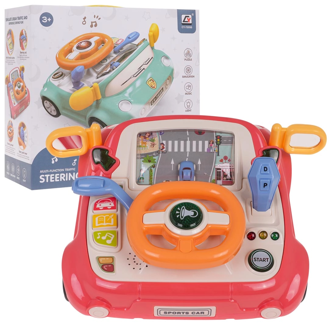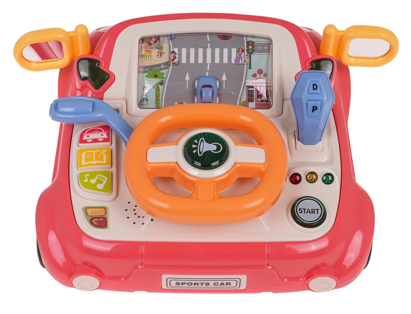 Das interaktive Auto begeistert kleine Fahrer mit realistischen Elementen – leuchtenden Frontlichtern, blinkenden Blinkern, beleuchteter Hupe und Fahrzeuggeräuschen inklusive Melodien. Kinder können am Lenkrad drehen, Gänge schalten und die sich bewegende Straße mit Auto auf dem integrierten Display verfolgen.