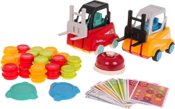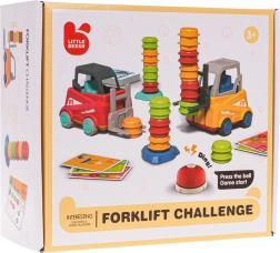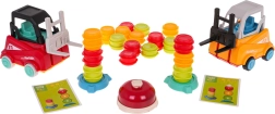 Der Gabelstapler ist ein unterhaltsames und anspruchsvolles Geschicklichkeitsspiel für Kinder ab 3 Jahren. Das Set enthält zwei Gabelstapler, Fässer zum Stapeln, Sockel, Karten und eine Glocke. Ziel ist es, schnell und präzise einen Turm aus Fässern nach der gezogenen Karte zu bauen. Das Spiel wird auf Zeit gespielt und der Spieler gewinnt, der alle Fässer als Erster erfolgreich vom Stapler auf den Sockel versetzt.