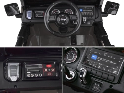 Start mit Metallschlüssel, Front- und Heck-LEDs, öffnende Türen sowie Kofferraum hinten. Das Auto spiegelt den legendären Stil des Wrangler Rubicon originalgetreu wider.