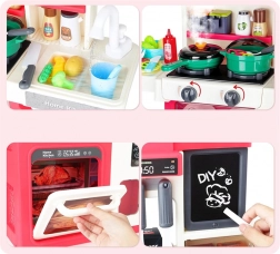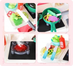 Interaktive Kinderküche in Pastellfarben ist die ideale Wahl für kleine Köchinnen und Köche. Sie bietet jede Menge Spaß mit vielen beweglichen und zu öffnenden Elementen, die die Aufmerksamkeit der Kinder fesseln und eine sichere Alternative zu einer echten Küche darstellen.