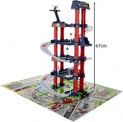 Breite, spiralförmige Rampen, Sicherheitsgeländer und ein Landeplatz für den Helikopter auf dem Dach bieten unendlich viele Spielszenarien.