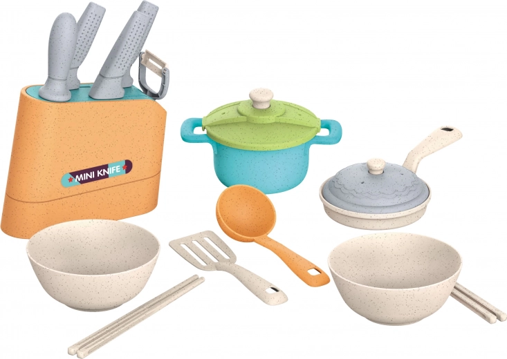 Dieses Set von Küchenutensilien wurde mit Rücksicht auf die Umwelt hergestellt, was es ideal für das Lernen und den Spaß in der Küche macht. Kinder können sich wie echte Köche fühlen und zu einem ökologischen Ansatz beim Kochen beitragen: