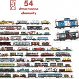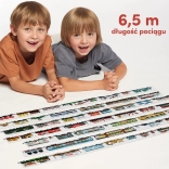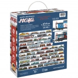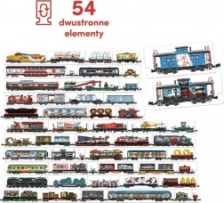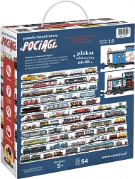 Das Puzzle enthält 54 beidseitig gestaltete Teile und ein Lehrplakat mit interessanten Fakten aus Technik und Verkehrsgeschichte. Kinder und Erwachsene können in die Welt der Eisenbahnen eintauchen und viel Neues lernen.
